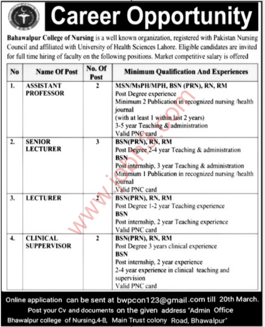 The Bahawalpur College of Nursing Jobs 2025 are perfect for anyone seeking a meaningful and stable career in healthcare or education. These government jobs 2025 offer growth, job security, and the chance to help others.
