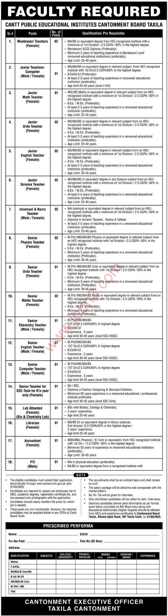 Tagged as: Cantt Public Educational Institution jobs 2025, Cantt Public School Taxila jobs 2025, Government education jobs 2025, Government jobs in Taxila 2025, Govt school jobs Taxila 2025, Govt teaching jobs 2025, Jobs in Taxila 2025, Jobs near me in Taxila, New govt teaching jobs 2025, Taxila Cantonment Board jobs 2025, Teaching jobs in Punjab 2025