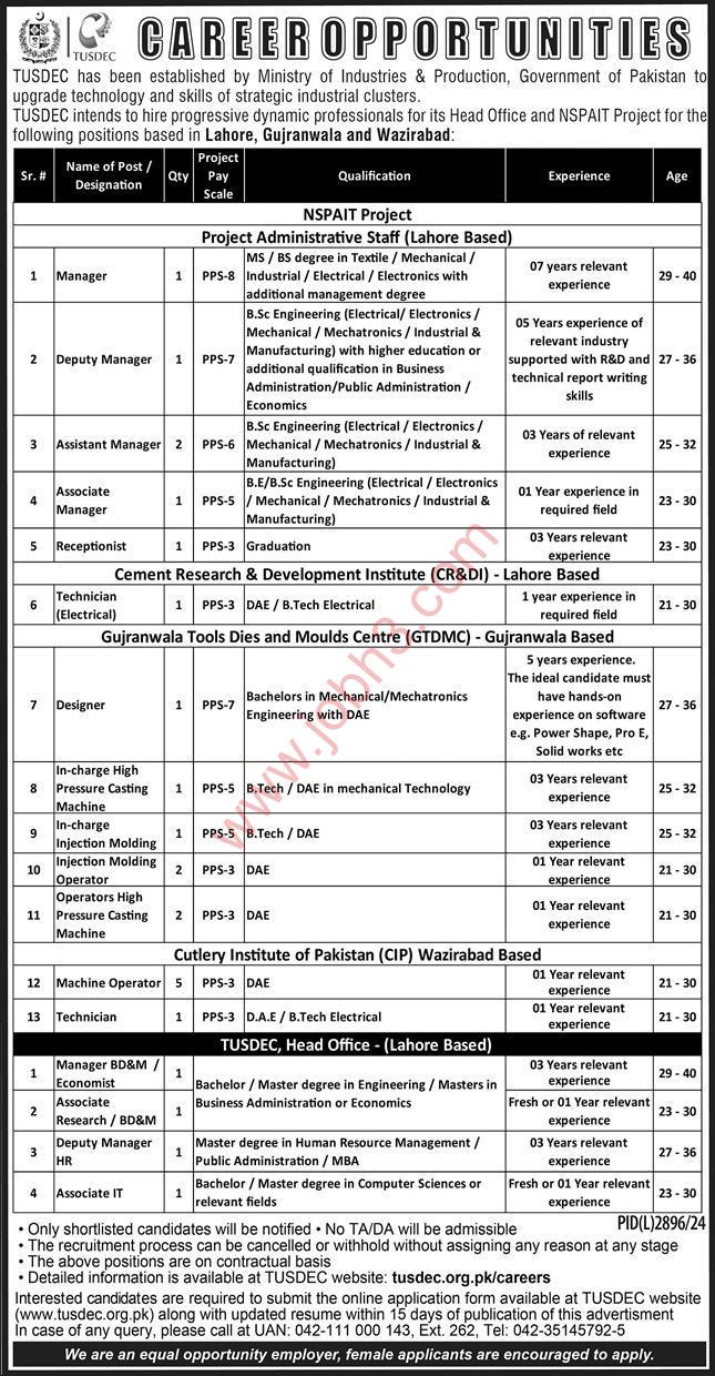 Education: Matric, Intermediate, or Bachelor’s degree (based on job)