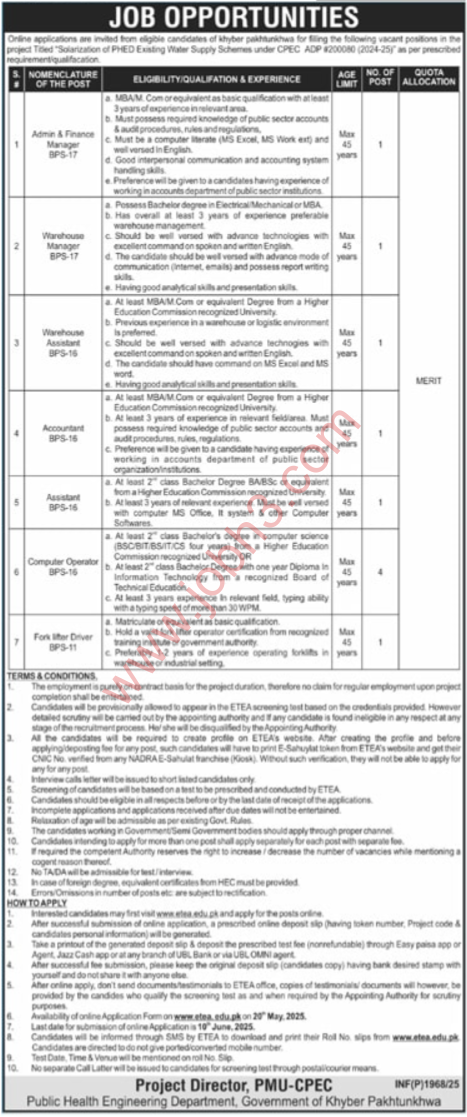 Click on Public Health Engineering Department Peshawar Jobs 2025.