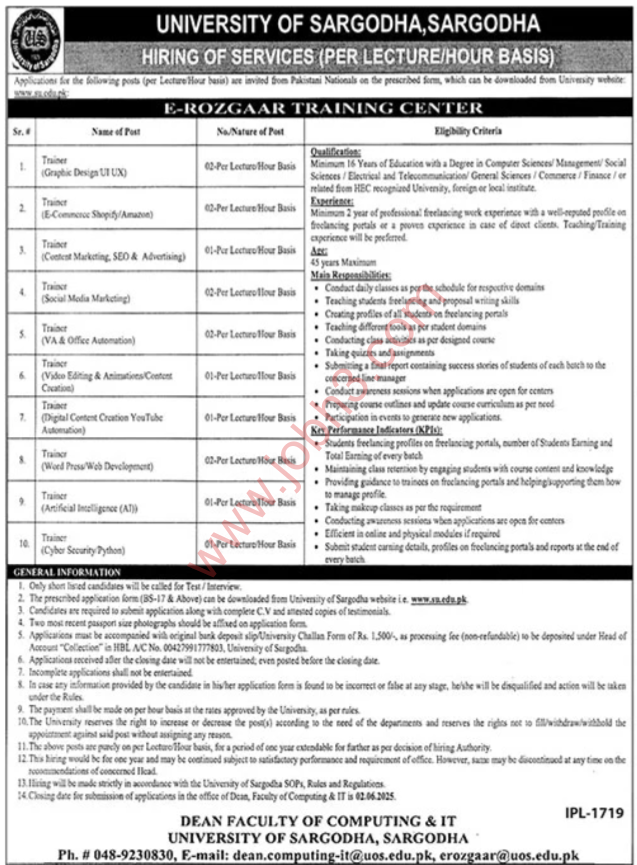 Here are some of the roles you can apply for in the University of Sargodha UOS Jobs 2025: