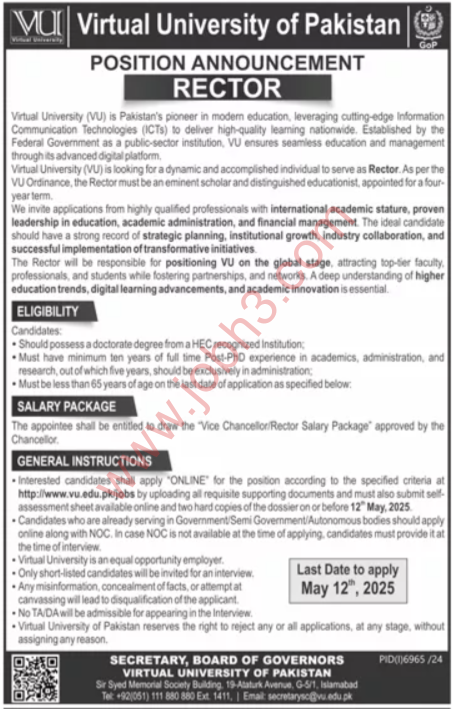These reasons make Virtual University of Pakistan Islamabad Jobs 2025 some of the best new jobs 2025 in the education field.