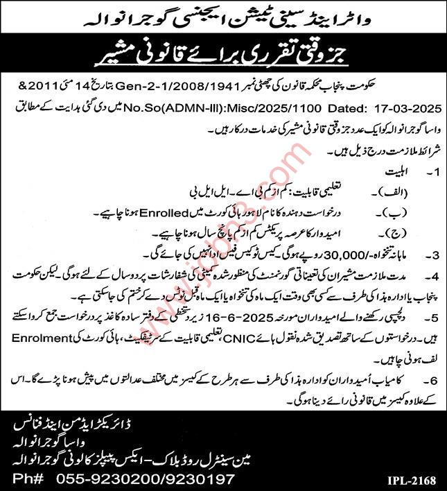 Apply now and take the next step in your career with WASA Gujranwala!